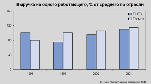 Сам завод в Первоуральске достаточно современное и высокотехнологичное предприятие, ориентированное главным образом на выпуск бесшовных труб нефтяного сортамента (хотя подобная характеристика и является условной, так как завод выпускает более 25 тыс. типо- и маркоразмеров труб для всех отраслей промышленности). Учитывая нефтяные интересы Альфа-Групп и схожесть в сортаменте ПНТЗ и Тагмета, внимание и усилия Альфы становятся очевидными.
