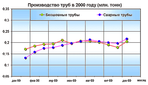 Весь 2000 год отечественная металлургическая отрасль находилась на подъеме: повсеместное увеличение спроса, приемлемый уровень мировых и внутренних цен, накопленные собственные ресурсы позволяли предприятиям проводить взвешенную инвестиционную политику, направленную на модернизацию и ввод новых фондов для увеличения выпуска конечной продукции. Такая политика не обошла стороной и предприятия, занятые выпуском труб. Только за последний год выпуск продукции этих предприятий неуклонно ... ... ...