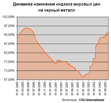 Цены на рынке черной металлургии Позитивный для мировой металлургии 2000 год сменился в 2001-2002 годы ситуацией, характеризующейся несбалансированностью спроса и предложения для сталелитейной промышленности.