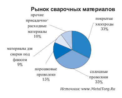 Рынок сварочной техники в целом включает два основные сектора: сварочно-присадочные материалы и сварочное оборудование. Последний сейчас доминирует, но значительной остается и доля расходных материалов. В настоящее время она составляет около $5,5 млрд., а по прогнозу маркетинговой фирмы «Frost&Sullivan» к 2006 г. объем выпуска сварочных электродов и присадочных материалов в мире превысит $6,2 млрд. При этом их продажа на европейском рынке достигнет 1,3 млрд. евро, а лидером по темпам роста останется Азия (прежде всего Китай).