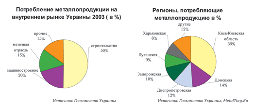 По регионам крупнейшими потребителями металла являются экономически благополучные Киев и Киевская область, далее – индустриальные области, где сконцентрирована значительная часть украинской промышленности (Донецкая, Днепропетровская, Запорожская, Харьковская и Луганская области).
