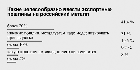 Давление на российское правительство направлено на введение экспортных пошлин на продукцию российской металлургии. Это хорошо подтвердил последний опрос посетителей сайта MetalTorg.Ru