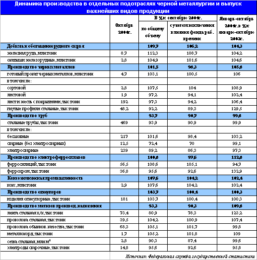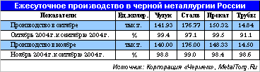 Ну а дальше – еще хуже. Предварительные данные ноября 2004 года однозначно подтверждают продолжение негативных тенденций производства в черной металлургии России.
