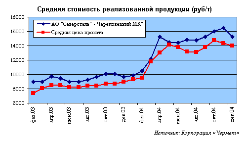 Ввиду высоких цен на сталь прошлый год у российских металлургов был более чем доходным. По оценкам ряда аналитиков сейчас в металлургической отрасли скопилось около 5-7 млрд. $ прибылей, а «Северсталь» - кандидат на первое место среди металлургических компаний России в различных рейтингах. Чистая рентабельность компании достигла 30,4%, а ее чистая прибыль за 2004 год (по РСФО) увеличилась на 111,2% до 39,6 миллиарда рублей (около $1,3 млрд).