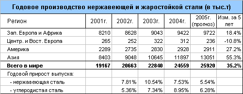 Динамичное развитие производства нержавеющей стали в мире стало явлением привычным. В последние годы оно заметно опережало развитие черной металлургии: прирост выпуска нержавеющей стали как правило обгонял рост выпуска обычной стали.