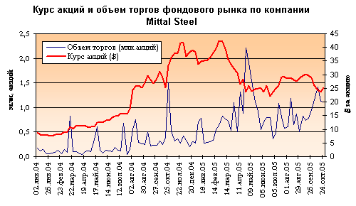 Практически равнодушен к сделке по «Криворожстали» оказался и мировой фондовый рынок, повидавший очень многое. Рост курса акций компании Mittal Steel после сделки составил менее 5% (см. Рис.1), что аналогично другим металлургическим компаниям. Увеличения мощностей (и активов) Mittal Steel на 11% рынок практически не заметил!