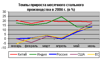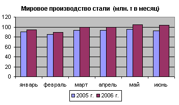К середине весны стало совершенно очевидно, что здоровье мировой черной металлургии явно идет на поправку. Мировое производство стали уверенно растет в большинстве регионов мира, особенно в Азии. Пессимистические прогнозы о низком уровне цен явно не сбылись, стоимость металла уверенно росла в течение всего 1-го полугодия 2006 г. на фоне стабильного спроса практически на всех рынках мира.