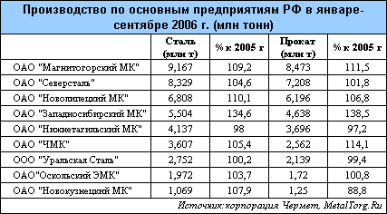 Черная металлургия: итоги 9 месяцев 2006 г. (Часть II)