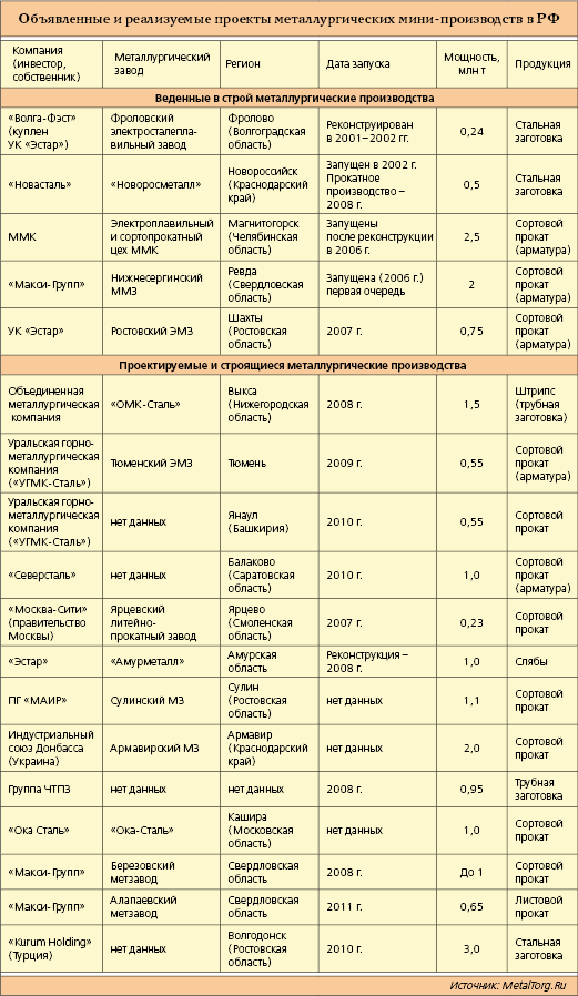 Однако рентабельный выпуск и рост спроса на стальную заготовку (на экспорт) и на стальную арматуру (на внутренний рынок) сделали актуальным вопрос о быстром расширении этих производств. Мини-заводы для решения этой задачи оказались бы как нельзя кстати.