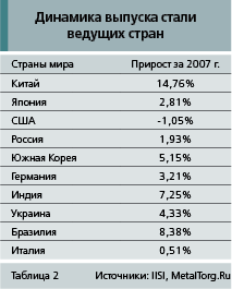Топ¬10 стран – ведущих производителей стали, обеспечивающих около 89% ее мирового выпуска, в 2007 г. почти не изменился (таблица 2).