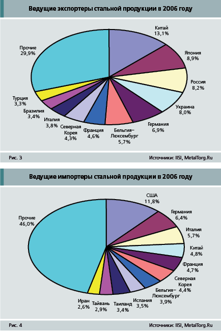 В последние годы грузопотоки экс¬порта (импорта) перераспределяют около 34% стальной продукции, произведенной во всем мире. По оценкам MetalTorg.Ru для 2007 г., из 1,316 млрд т стали, выпущенной в мире, будет экспортировано более 430 млн т.
