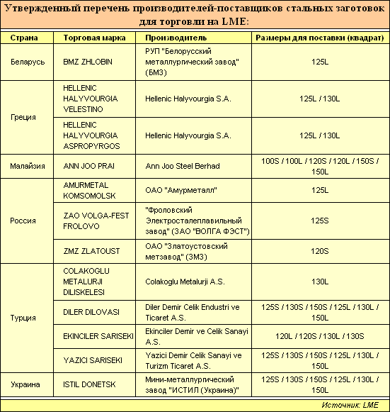 Тем не менее идея биржи реализована – с февраля на LME стартовали торги по двум фьючерсным контрактам на единственный вид продукции – квадратную стальную заготовку для дальнейшего переката в сортовой (длинномерный) прокат.