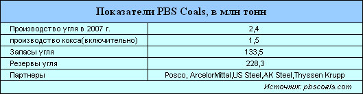 А теперь несколько подробнее об этой сделке. Группа «Северсталь» сообщила в августе 2008 г., что через свое горнодобывающее подразделение Severstal Resources достигла договоренности о приобретении активов угледобывающей компании PBS Coals Corporation за $1,3 млрд.