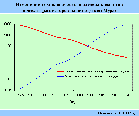 В острой конкуренции полупроводниковыми компаниями стремительно совершенствуются кремниевые процессоры, память, контроллеры и прочие микросхемы для компьютеров, сотовых телефонов, автоэлектроники, фото- и видеотехники и многих других применений. Преимущественно – за счет миниатюризации основных активных компонентов (транзисторов), что одновременно улучшает их быстродействие и энергопотребление.