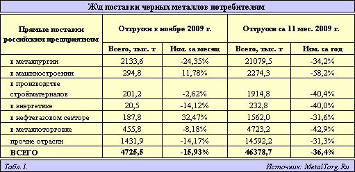 Потребление металлопроката в 2009 году