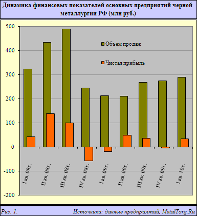 Прежде всего приведем суммарную динамику ряда показателей по РСБУ для 20 крупнейших предприятий черной металлургии РФ, реализующих более 90% стальной продукции, выпускаемой в нашей стране (рис. 1).