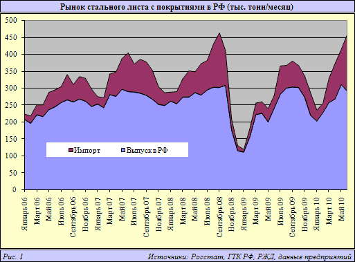 Другой позитивный момент в том, что спрос в России находит дорогая и высокотехнологичная металлопродукция. Отметим, что на нашем рынке более 92% этой группы проката составляет оцинкованный лист, включая около 40% того же листа в окрашенном состоянии (т. е. листа с полимерными покрытиями).
