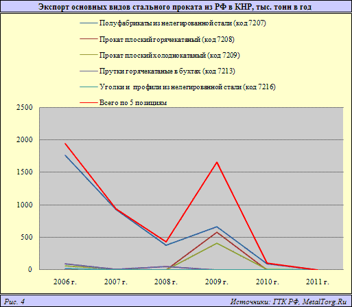 Отметим (по итогам 2011 г.), что в основном наши поставки в Китай идут по весьма низким, почти бросовым ценам. А большая часть экспортируемой стальной продукции из РФ сохраняет стойкую тенденцию дальнейшего снижения объемов.