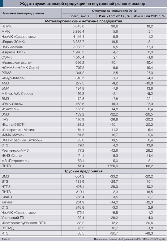 Впрочем, цифры отгрузок по 28 крупнейшим металлургическим предприятиям РФ в табл. 3 говорят сами за себя. Малые производства в российской металлургии, увы, все чаще продолжают терять свои позиции.