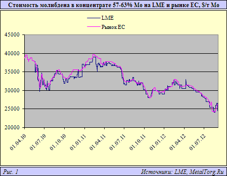 По результатам первых 8 месяцев 2012 г. объем биржевой торговли кобальтом составил 6,3 тыс.т, молибденом – 3,9 тыс.т. Много это или мало? Относительно объемов мирового рынка это 17,5% для кобальта и 2,8% – для молибдена. Вроде бы достаточно неплохо, если не сравнивать с оборотом других цветных металлов. Так, меди и цинка на LME за этот же период было продано (перепродано) почти в 50 раз больше, чем выпущено во всем мире, алюминия, олова, никеля и свинца – в 24–34 раза больше объемов выпуска. Даже объем сделок со вторичными алюминиевыми сплавами (из металлолома) превысил их производство втрое.