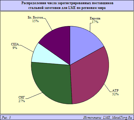 Если разобраться, то даже начало торгов было не слишком блестящим – первоначально в поставщики заготовки бирже удалось заманить лишь малоизвестные металлургические компании: греческую Hellenic Halyvourgia и турецкую Colakoglu Metalurji. К осени 2012 г. картина, конечно, стала более пестрой, но в большинстве своем поставщики (зарегистрированные бренды) – это азиатские заводы и предприятия СНГ (рис. 3).
