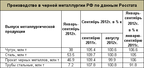 По итогам января–сентября 2012 г. наша металлургия показала средние в мире производственные показатели и удержала (в отличие от многих) на позитивном уровне рентабельность большинства своих производств.
