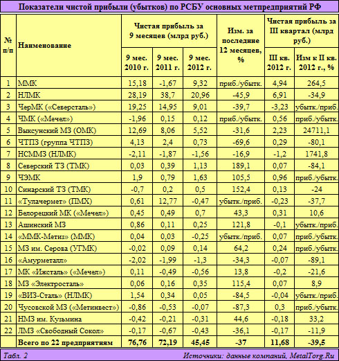 Сравнение их с предыдущими отчетами – типовая и рутинная задача. Однако без таковой анализ состояния черной металлургии по производству и отгрузкам продукции (в статье «Черная металлургия РФ за 9 месяцев 2012 года» от 7 ноября) выглядит незаконченным. Так что посмотрим, каких финансовых успехов достигли основные предприятия и холдинги этой отрасли.