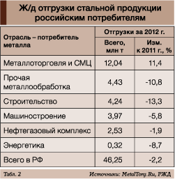 Увы, но спад спроса на прокат, стальные трубы и метизы в 2012 г. продемонстрировало большинство крупных потребителей в машиностроении, нефтегазовой отрасли и энергетике.
