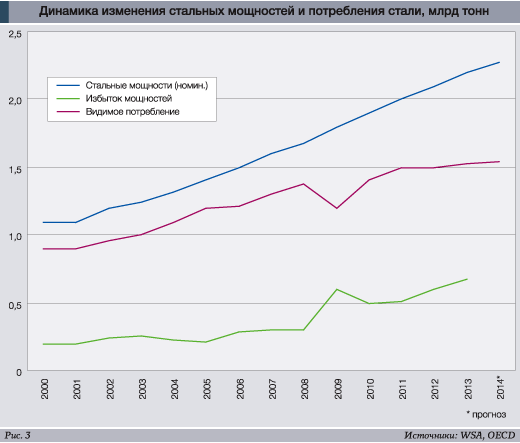 В декабре 2013 г. свою точку зрения на проблему избыточных стальных мощностей высказал и руководитель крупнейшей российской стальной компании «Северсталь» Алексей Мордашов. И помимо уже привычных тезисов о главной проблеме мировой стальной индустрии он предложил немедленное и крайне непопулярное решение – сокращение производства у всех производителей в мире.