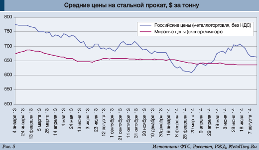 На другом ценовом полюсе – стальной рынок США, наиболее защищенный от импорта и сравнительно активный в первой половине 2014 г. Преодоление последствий ипотечного кризиса и активизация ряда нефтегазовых проектов оживили спрос на американский металлопрокат и трубы. Однако особого оптимизма западных аналитиков мы не разделяем. Рост производства в металлургии США очень мал, а загрузка мощностей в текущем году колеблется, по данным AISI, в пределах 75–80%.