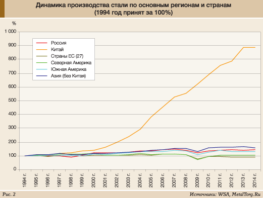 А в Китае, выпускающем и потребляющем около половины всех черных металлов мира, в 2014 году неожиданно, но ощутимо снизился внутренний спрос.