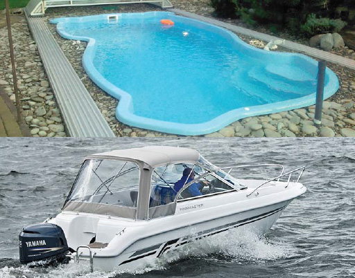 Отметим, что прочие применения стеклопластиков как конструкционных материалов к настоящему времени остались весьма ограниченными. К примеру, серийные автомобили с полностью стеклопластиковым кузовом после Corvette 1953 года не выпускались и не выпускаются. Массовые авто используют считаные детали, а в основном – все более тонкую, но качественную сталь. Эксклюзивные и спортивные модели предпочитают сплавы алюминия и углепластики. Однако в мире сохраняется очень широкое применение стеклопластиков в производстве малых судов и даже – плавательных бассейнов (в США на заказ) (фото 4).