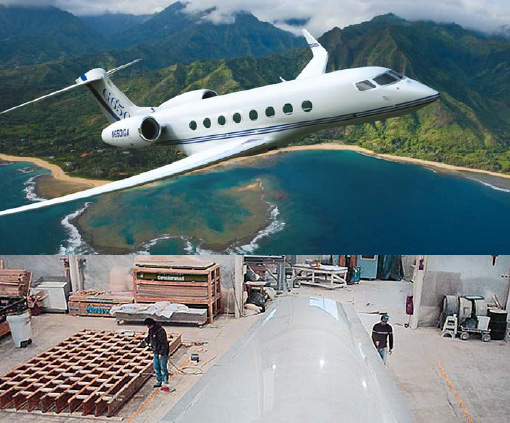 Сохраняется в наши годы и применение лучших стеклопластиков в производстве деталей самолетов и прочих летательных аппаратов. К примеру, из стеклопластика изготавливают элероны, закрылки и некоторые другие детали крыла такого современного самолета, как Boeing 787. А из ламината на основе стекло- и углепластика – еще и фюзеляж. Со значительным применением в конструкции стеклопластика создана также сверхвысотная и сверхскоростная модель Gulfstream G650 – один из самых лучших представителей авиации бизнес-класса (фото 6).