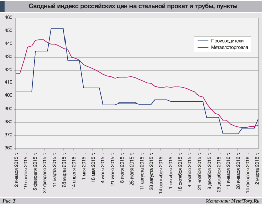 А в целом в начале 2016 года наша металлургия словно вспомнила о том, что две трети объемов своей продукции все-таки реализует на внутреннем рынке. Ниши, в частности от импортозамещения 1,5 млн т украинской стали, есть. А еще впереди сезонная активизация в российском строительстве, что незамедлительно нашло отражение в ценах отечественного металлопроката.
