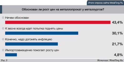 Опрос многочисленных посетителей сайта MetalTorg.Ru, большинство которых представляет металлоторговлю и конечных потребителей стальной продукции, дал нам неожиданные результаты (рис. 5).