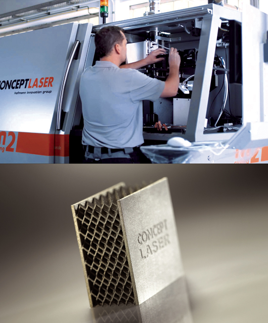 Особенностью систем Concept Laser является запатентованная «технология стохастического экспонирования». По ней слой материала проплавляется «штриховкой» лазером по отдельным элементам, причем с изменением шага и угла этого растра. Геометрический режим плавления этих элементов, мощность и скорость луча лазера программируются (в зависимости от порошка и типа металла) и во многом являются теми самыми ноу-хау и реальной технологией, которыми западные разработчики не торопятся делиться (Фото 4).