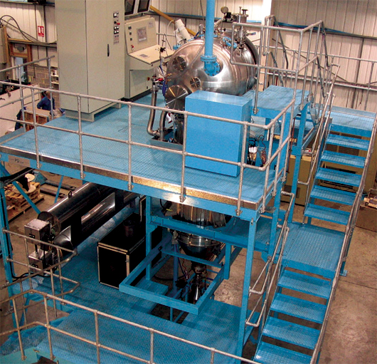 Изучение процессов 3D-печати SLM-технологией показало, что она крайне чувствительна к качеству сырья – специального порошка (микрогранул) металлов и сплавов. Именно их производство в последнее время фактически выделяется в отдельный процесс и чаще всего осваивается металлургическими компаниями. Хотя в заметной степени в РФ это производство было исследовано и освоено также в ВИАМе. Увы, но вновь на базе сравнительно современного зарубежного оборудования, например атомайзера Hermiga 10/100 VI фирмы PSI (Великобритания), приобретенного в 2010 году (Фото 5).