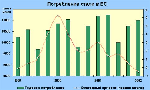 В течение всей второй половины текущего года потребление стали резко снижалась и основные причины – падение темпов роста в смежных секторах, снижение инвестиционной активности, низкие цены и снижение выпуска продукции – сходные с общемировыми. Таким образом, сложилась уникальная ситуация: по инерции в первые 2 квартала ситуация на рынке складывалась благоприятно, хотя первые признаки стагнации уже наметились, а во второй половине года реальное потребление незначительно сократилось (графи ... ... ...