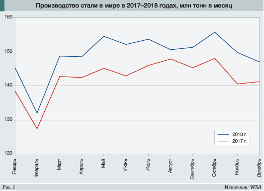 Прошедший 2018 год, при всех его «инновациях», в итоге всё же оказался позитивным для чёрной металлургии мира. По оценкам World Steel Association (WSA), производство стали по 64 основным странам выросло на 4,51%, до рекордного объёма 1,79 млрд т.