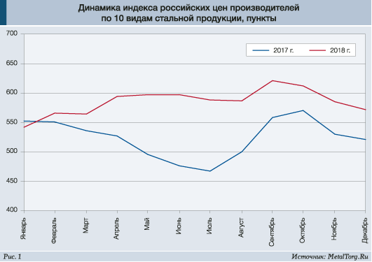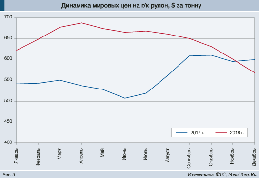 Однако невысокий прирост объёмов производства был лишь ответом на невыразительный спрос как внутреннего, так и экспортного рынков. Что подтверждается динамикой среднего уровня стальных цен (рис. 1–3).