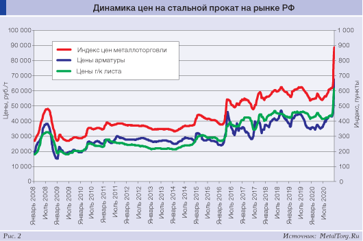 Но жизнь в лице неугомонного 2020 года преподнесла очередной сюрприз – начался не просто рост, а буквальный взлет стальных цен на российском рынке (рис. 2).