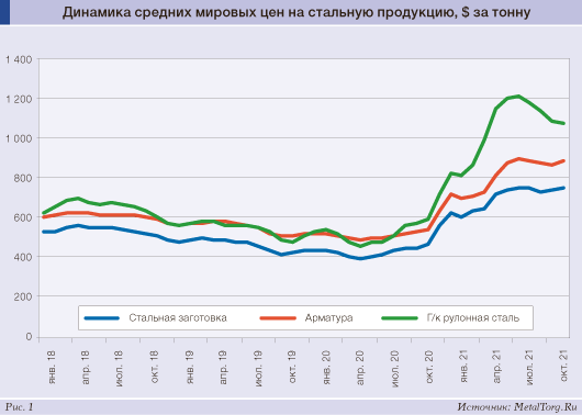 В начале прошлой осени прогнозы восстановления мировой экономики после удара, нанесенного пандемией, в лучшем случае были «робко-оптимистичными». В марте 2021 года глава МВФ Кристалина Георгиева уже демонстрировала очевидный позитив: «Хорошая новость состоит в том, что в конце тоннеля есть свет. После самой тяжелой глобальной рецессии со времен Второй мировой войны идет процесс восстановления». А уже в апреле Федеральная антимонопольная служба РФ (ФАС) возбудила дела против «Северстали», ММК и НЛМК, обвинив их в установлении и поддержании монопольно высоких цен на горячекатаный прокат. Хотя, справедливости ради, к тому моменту аналогичные дела можно было возбуждать против любого из производителей стали в мире (рис.1).