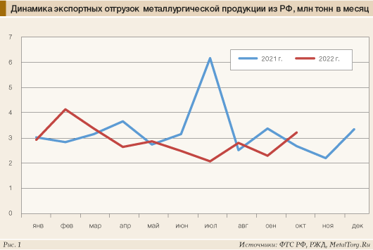 С марта по сентябрь объемы наших поставок стальной продукции за границу существенно уступили уровню предыдущего года (рис. 1).
