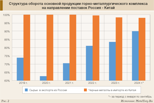 По всему металлургическому сырью годовая выручка от торговли российских компаний с Китаем упала на 11%, до $4 млрд, в то время как объемы поставок выросли ориентировочно на 8%, до 36 млн т.