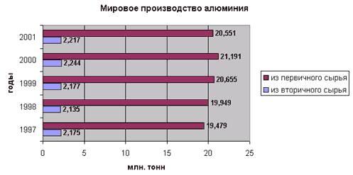 Как следует из динамики Графика 1, мировой рынок вторичного алюминия за пять лет практически не изменяется. Тем важнее отметить, что помимо поддержки своих производственных мощностей и снижения издержек, с начала 2002 года запущен ряд новых проектов по производству вторичного алюминия.