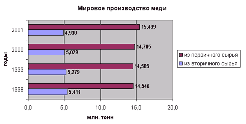 В первом квартале 2002 года производство меди из вторичного сырья снизилось еще на 5,4 %, в то время как производство из первичного сырья возросло на 1,9 %.
