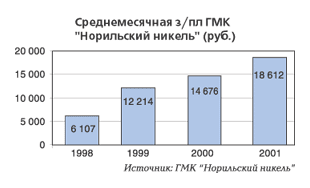 Еще один показатель, вокруг которого в декабре 2002 года разгорелись прямо-таки жаркие споры профсоюзных лидеров «Норильского никеля», - заработная плата.