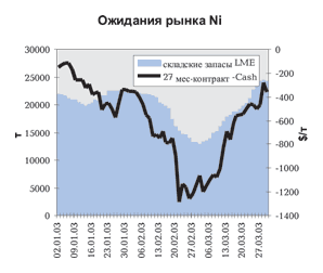 Сейчас мировой рынок не ждет заметного роста цен на металл и цена 27-месячных контрактов превышает текущие только на 10$/т.
