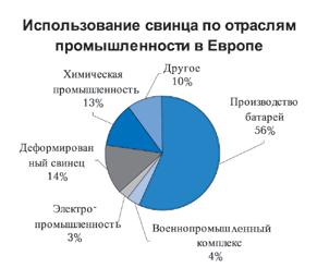 Рассмотрим спектр его современных применений на примере Европы, обеспечивающей около 26% мирового потребления свинца и наиболее «озабоченной» экологическими проблемами. В странах ЕС к концу 2000 года свинец используется в основном для производства автомобильных батарей и аккумуляторов, на долю использования которых приходится почти 2/3 металла.