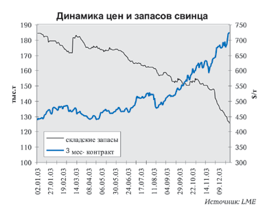 Лондонский журнал Metal Bulletin осенью 2003 года отмечал, что «уже сейчас очевидно, что ценовая конъюнктура свинца улучшается». Средняя цена свинца с немедленной поставкой на Лондонской бирже металлов (LME) в 2000 году составляла 455 долл. за тонну, в 2001 г. – 476 долл., в 2002 г. – 463 долл. за тонну. Средняя цена свинца на LME в сентябре этого года – 521 долл., а в октябре – более 615 долл. за тонну.